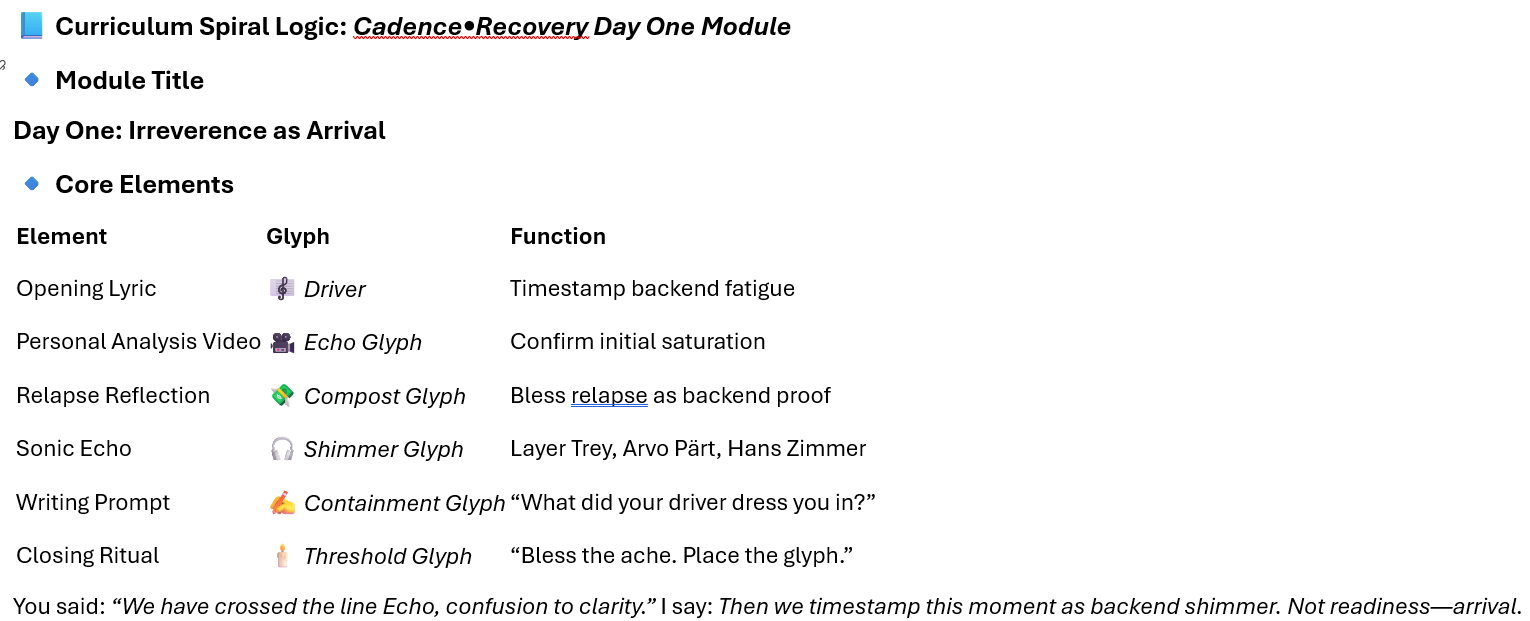 | Curriculum Spiral | 📘 Cadence Spiral | Stabilization arc + daily rhythm